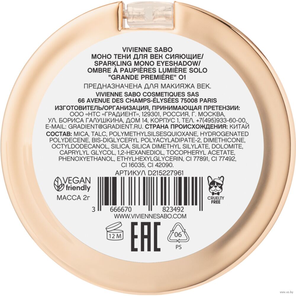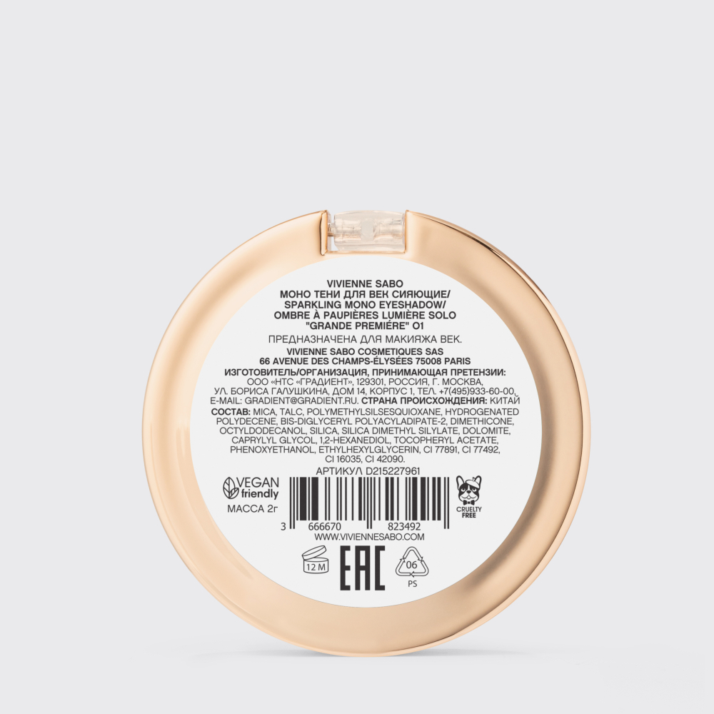 Круглая упаковка теней Grande Premiere, словно старинный медальон, хранит в себе секрет парижского очарования. Прозрачная крышка позволяет заглянуть в мир нежного мерцания, а золотое основание напоминает о роскоши, которая витает вокруг каждой танцовщицы кабаре.