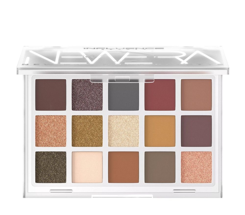 Палитра нейтральных тонов палетки с коричневыми оттенками и акцентами хаки и охры идеально подойдет для создания ультрасовременного нюдового макияжа.