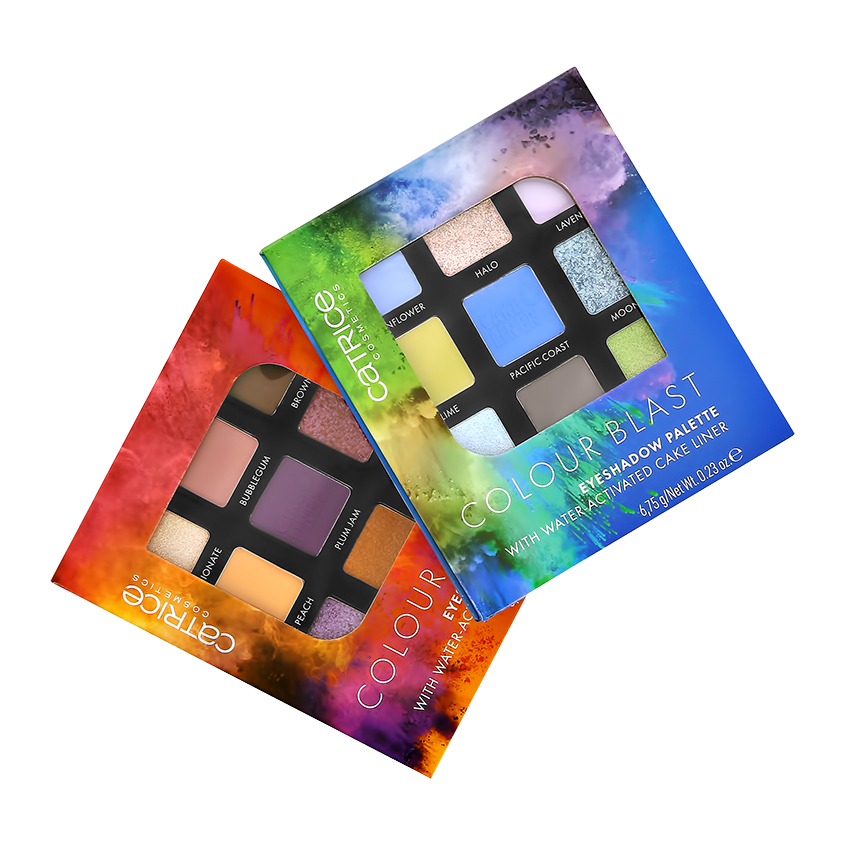 Палетки теней "Colour Blast Eyeshadow Palettes" от CATRICE привлекают внимание своими захватывающими и суперяркими цветами не только снаружи: мягкие матовые оттенки, мощные металлические оттенки и водоактивируемая подводка гарантируют настоящий "вау-образ".