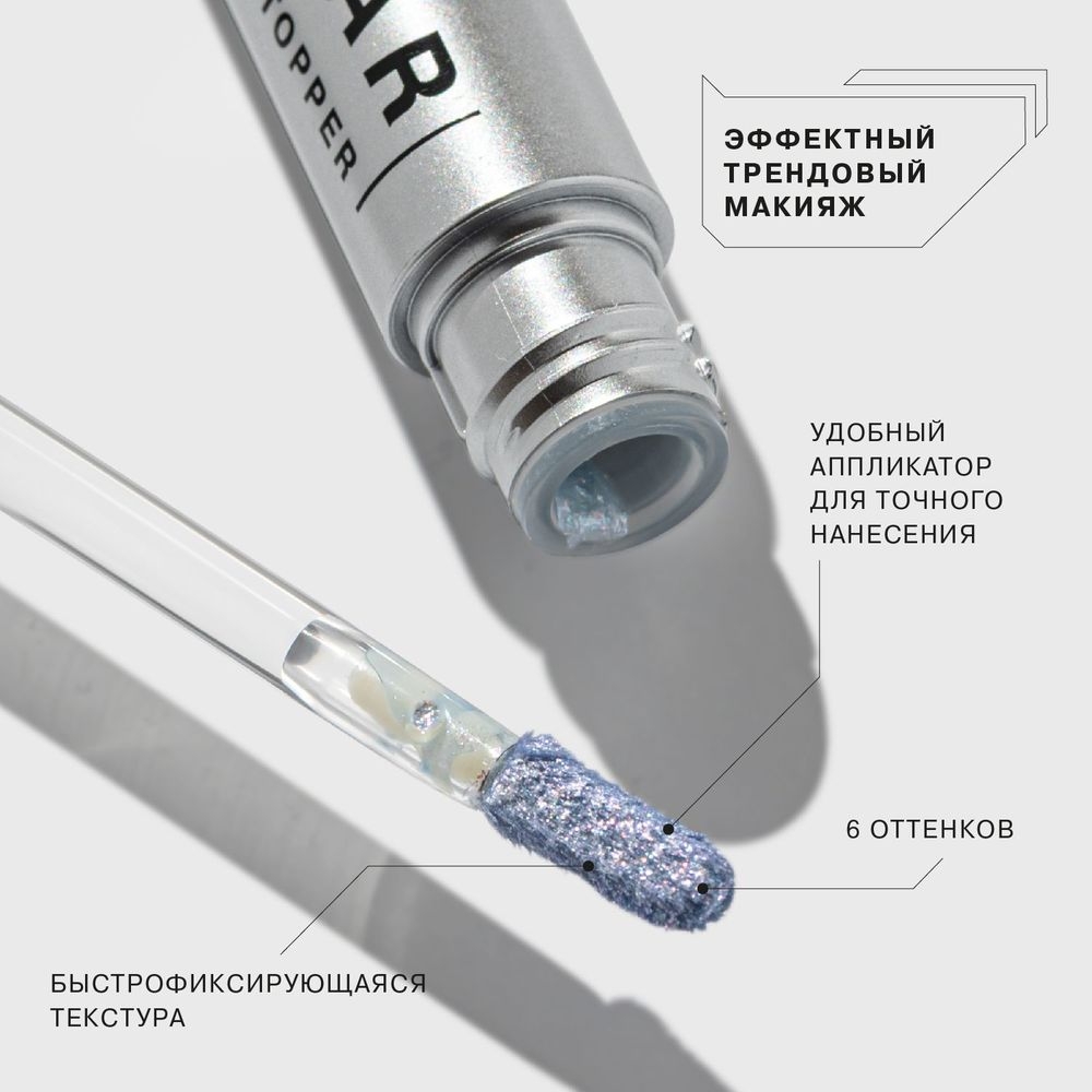 С помощью удобного аппликатора их можно наносить как жидкие тени, как сияющий финишный топпер поверх сухих теней или кремовых теней, или как сияющую подводку.
