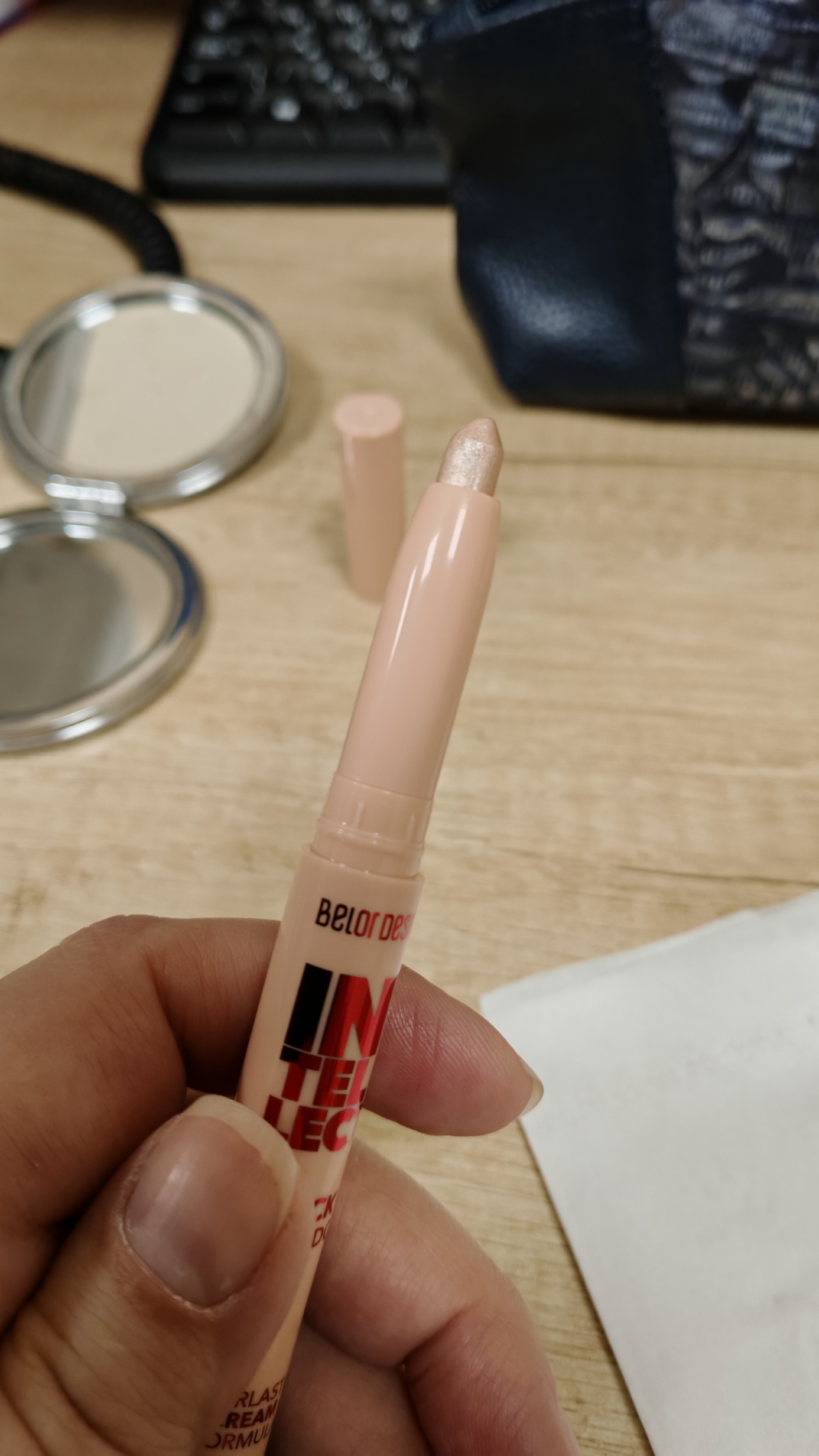 Компактный размер теней Intellect удобно носить с собой в косметичке – наносить их можно буквально на ходу.