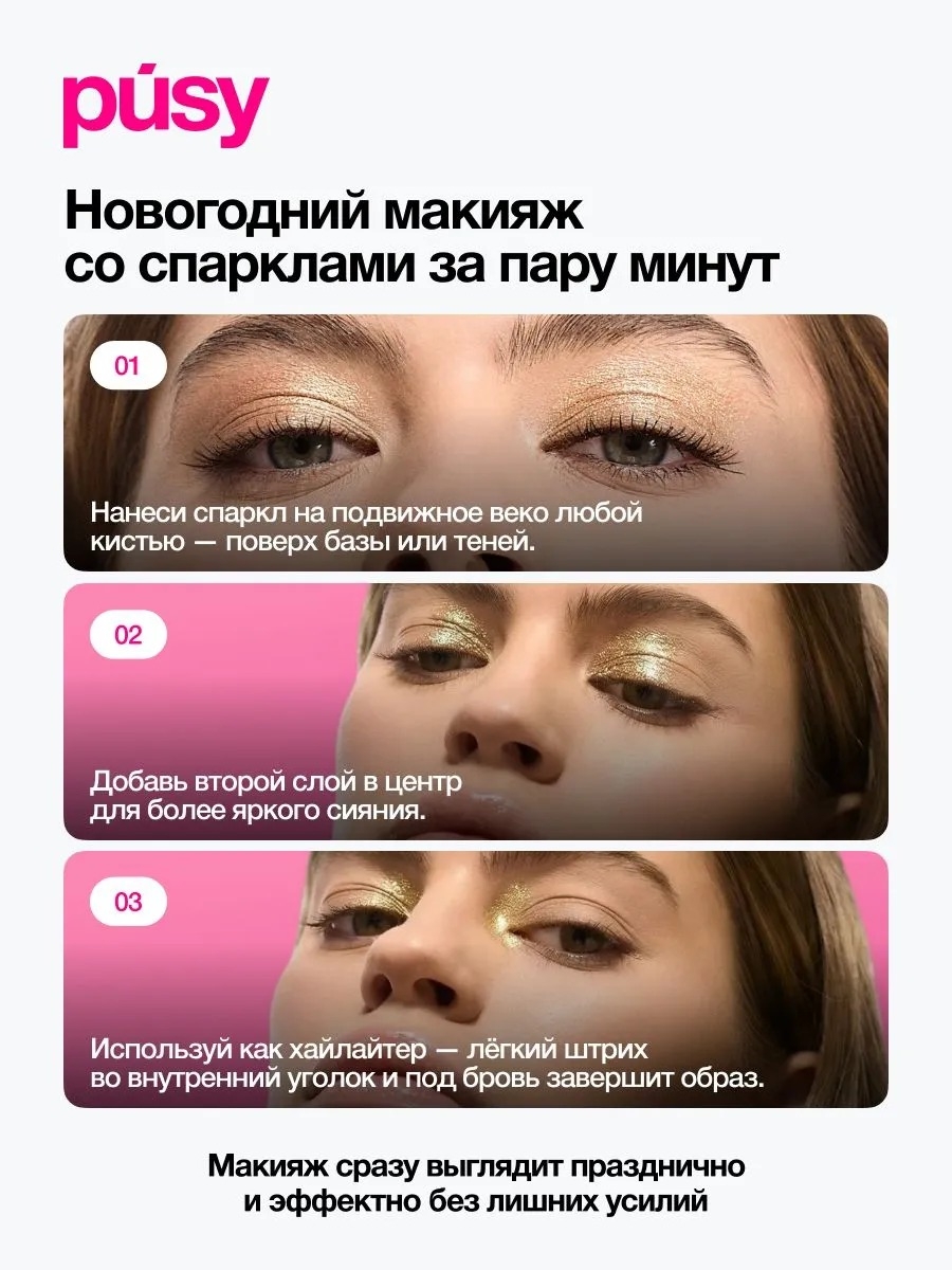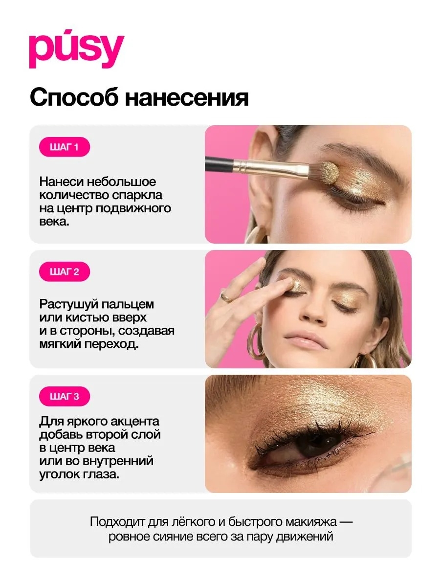 Спаркл для глаз Sand – это не просто золотистый блеск, а концентрат теплого света, превращающий веко в сияющий бархат пустыни на закате.