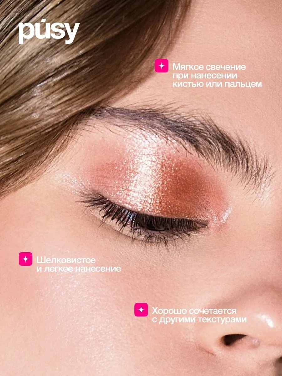 Мягкая текстура сияющих теней позволяет легко и равномерно распределить продукт, без неровностей и осыпаний. Тени для век блестящие имеют стойкую формулу, что позволяет тебе сиять от первого нанесения до последнего танца.