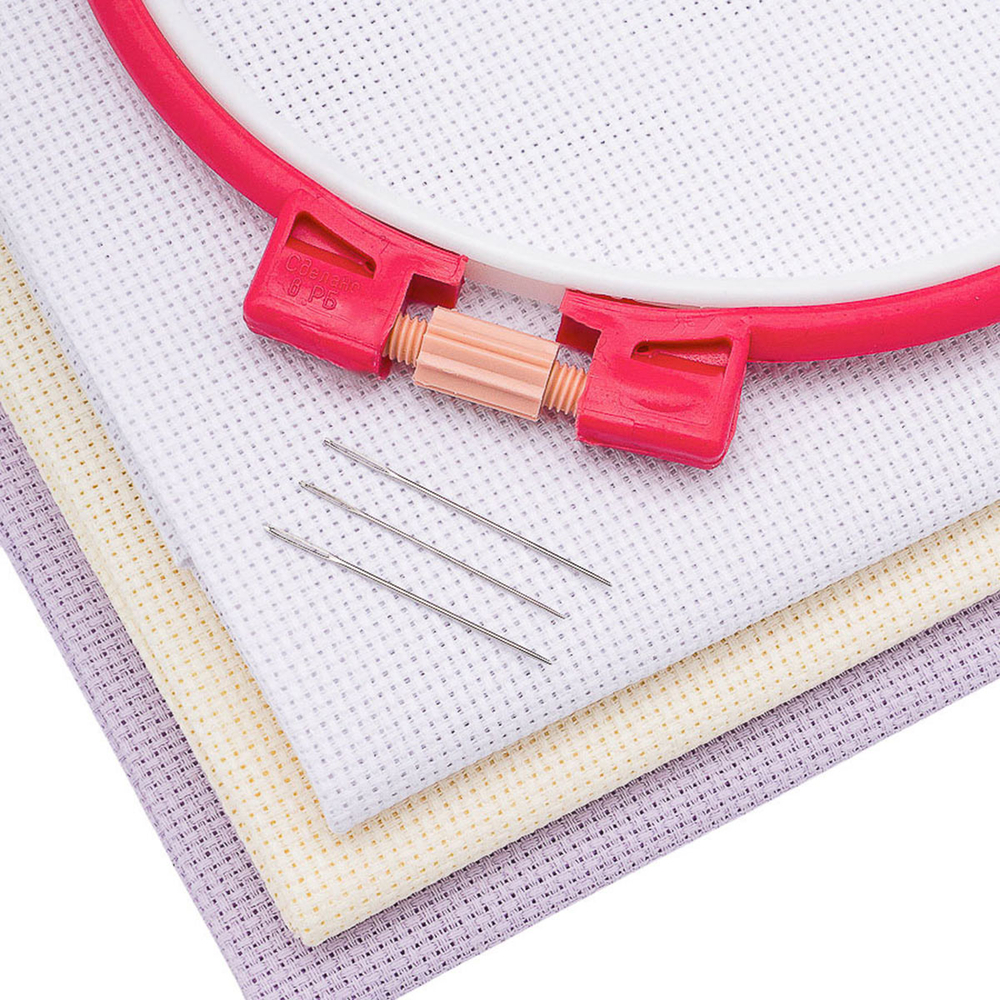 Пяльцы, входящие в комплект, обеспечивают надёжное натяжение канвы, что является залогом ровных и аккуратных крестиков. Цветная канва Aida 14 – это классический выбор для вышивания, благодаря чётко выраженным квадратам, облегчающим счёт крестиков. Иглы, специально подобранные для вышивания, имеют закруглённый кончик, который не расщепляет нити канвы, обеспечивая плавное и комфортное шитье.