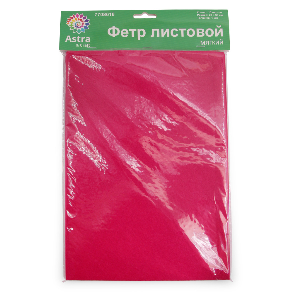 Фетр листовой мягкий (20х30 см; розовый; 10 листов)