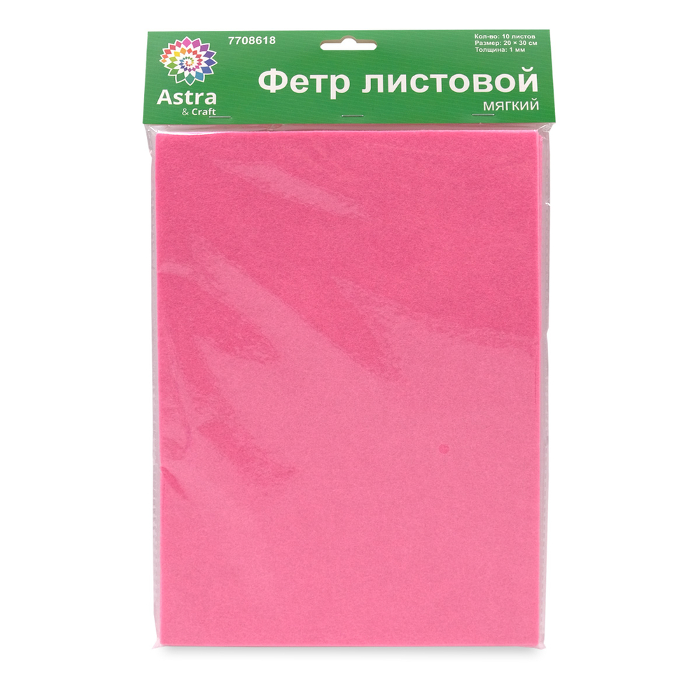 Фетр листовой мягкий (20х30 см; розовый; 10 листов)