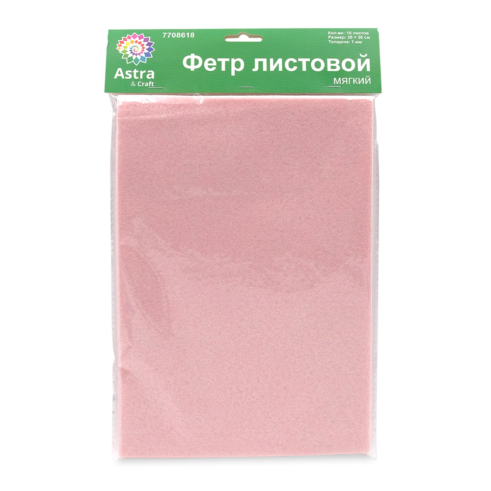 Мягкий листовой фетр от "Astra&Craft" – практичный материал для творчества. Фетр не осыпается, его легко сшивать или фиксировать на текстильный клей. Благодаря 'волокнистой' фактуре и небольшому ворсу фетр напоминает шерсть, но при этом гигиеничен, не является питательной средой для микроорганизмов и насекомых.