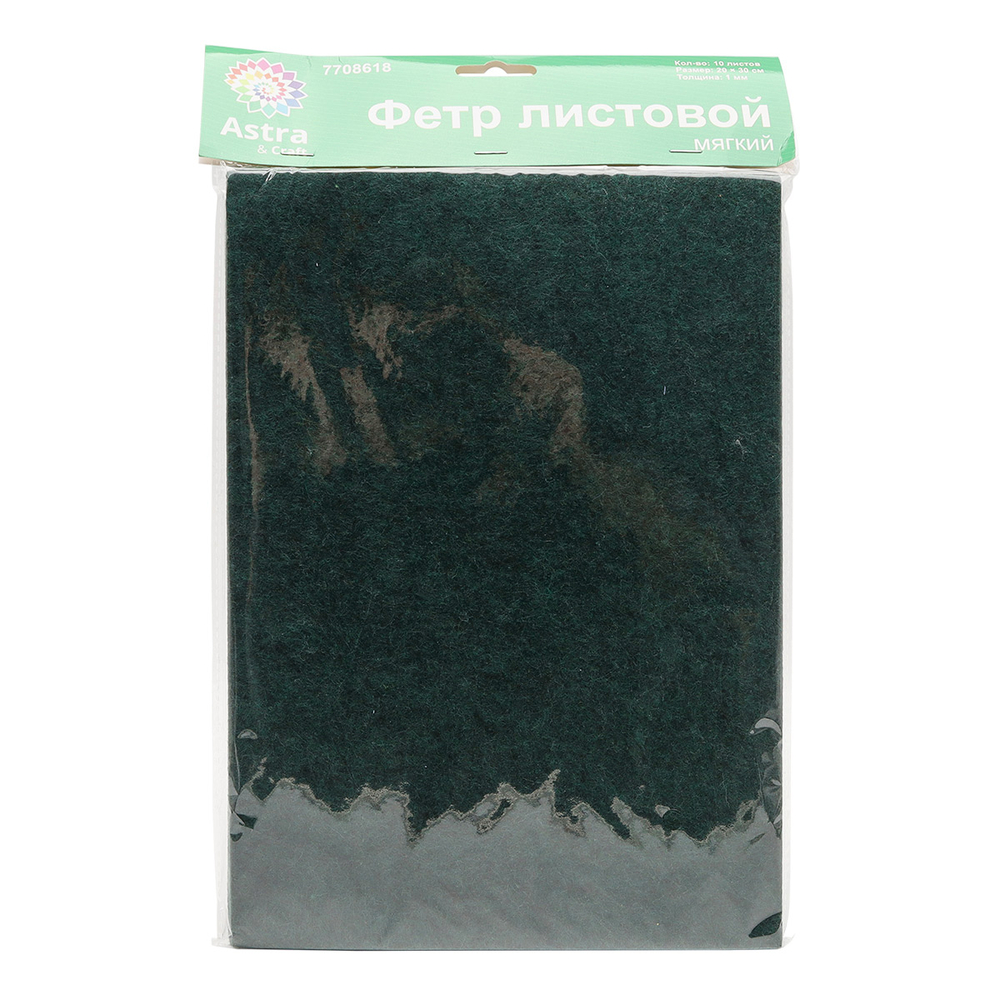 Мягкий листовой фетр от "Astra&Craft" – практичный материал для творчества. Фетр не осыпается, его легко сшивать или фиксировать на текстильный клей. Благодаря 'волокнистой' фактуре и небольшому ворсу фетр напоминает шерсть, но при этом гигиеничен, не является питательной средой для микроорганизмов и насекомых.