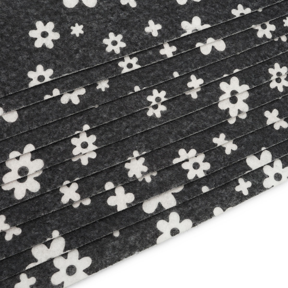Благодаря "волокнистой" фактуре и небольшому ворсу фетр напоминает шерсть, но при этом гигиеничен, не является питательной средой для микроорганизмов и насекомых.