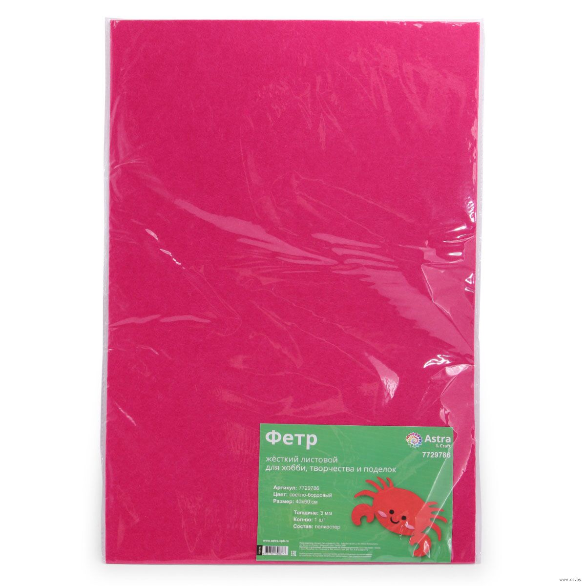 Жесткий листовой фетр Astra&Craft – прекрасный материал для творчества. Он окрашен в яркие цвета, не осыпается, его легко сшивать или фиксировать на текстильный клей.