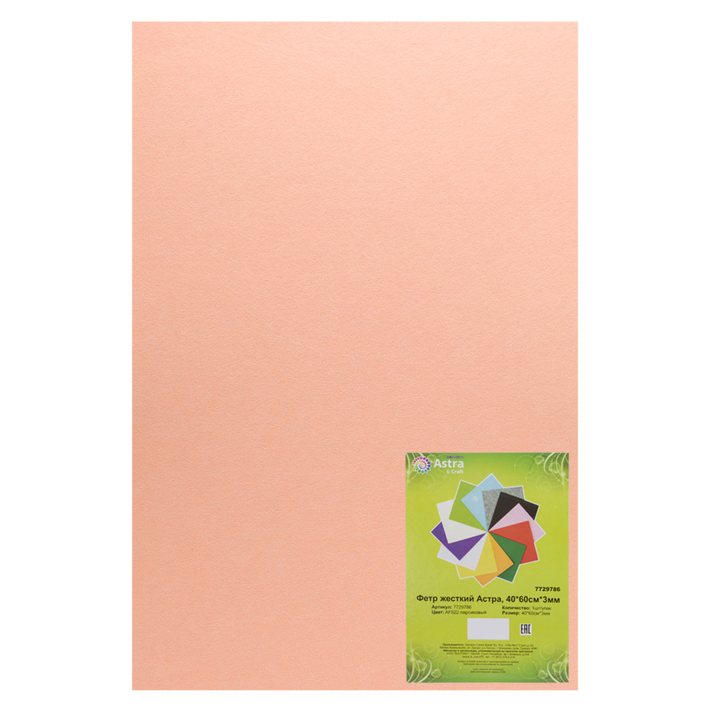 Жесткий листовой фетр Astra&Craft – прекрасный материал для творчества. Он окрашен в яркие цвета, не осыпается, его легко сшивать или фиксировать на текстильный клей.