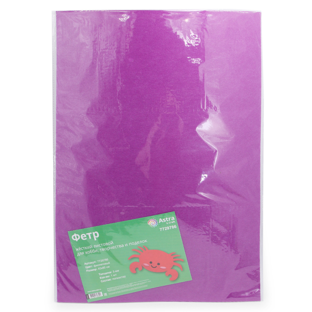 Жесткий листовой фетр Astra&Craft – прекрасный материал для творчества. Он окрашен в яркие цвета, не осыпается, его легко сшивать или фиксировать на текстильный клей.