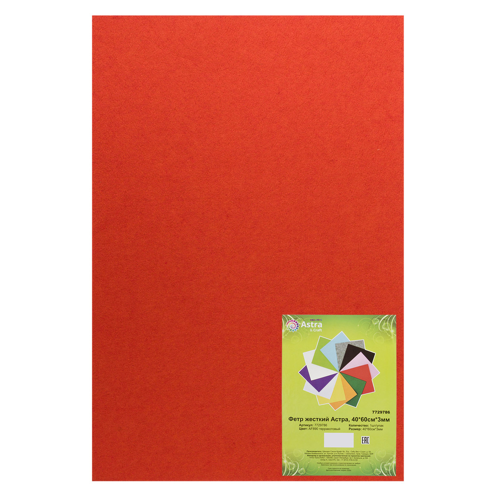Жесткий листовой фетр Astra&Craft – прекрасный материал для творчества. Он окрашен в яркие цвета, не осыпается, его легко сшивать или фиксировать на текстильный клей.
