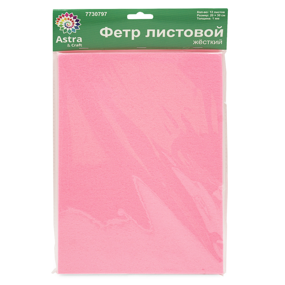 Листовой фетр для рукоделия жесткий от Astra&Craft – практичный материал для творчества. Фетр не осыпается, его легко сшивать или фиксировать на текстильный клей.