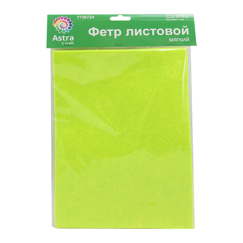 Фетр листовой мягкий "Astra" (20х30 см; желто-зеленый; 3 листа)