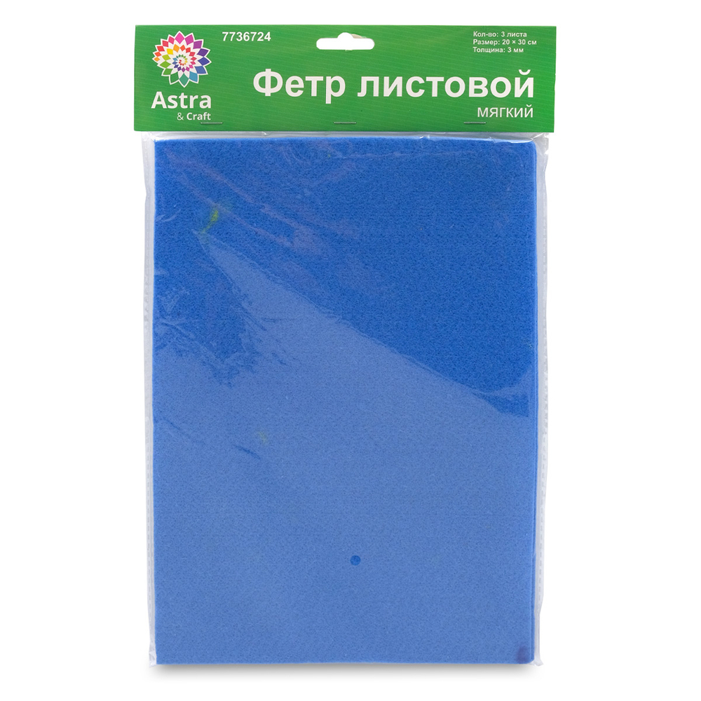 Фетр листовой мягкий "Astra" (20х30 см; голубой; 3 листа)