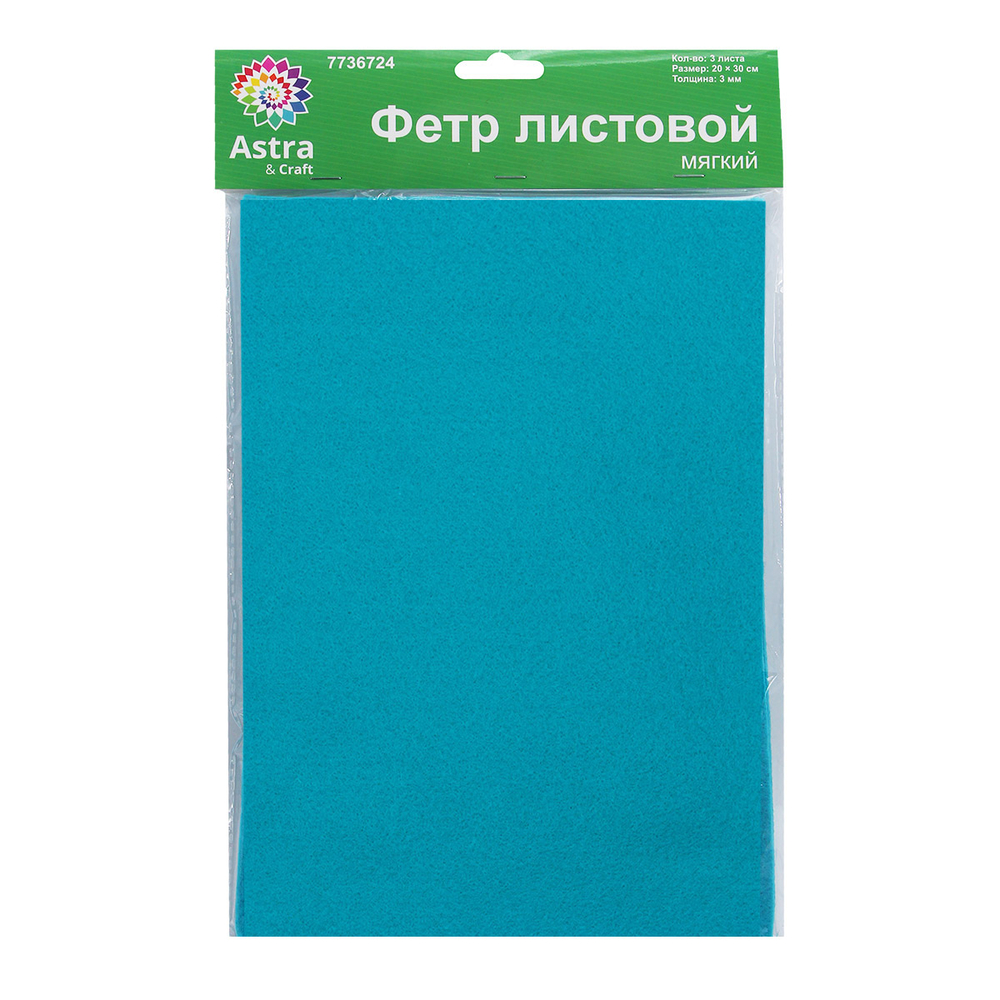 Фетр листовой мягкий "Astra" (20х30 см; морская волна; 3 листа)