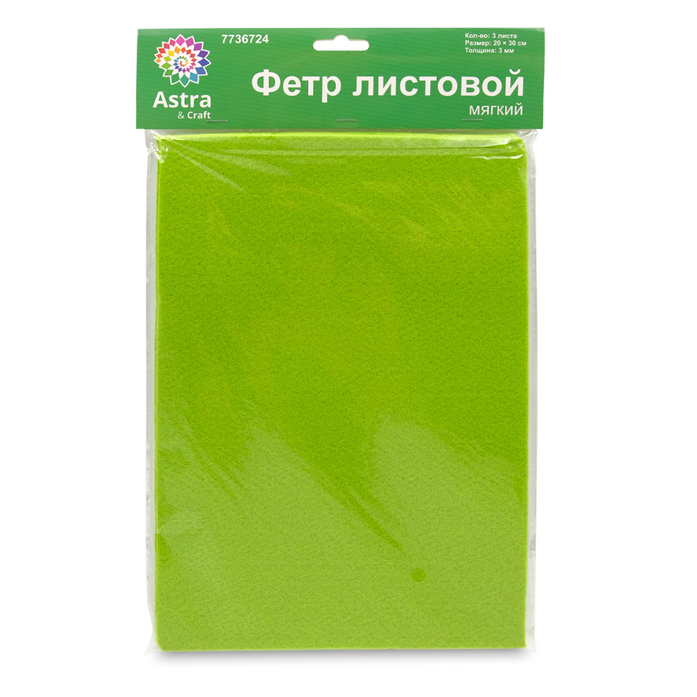 Фетр листовой мягкий "Astra" (20х30 см; светло-зеленый; 3 листа)
