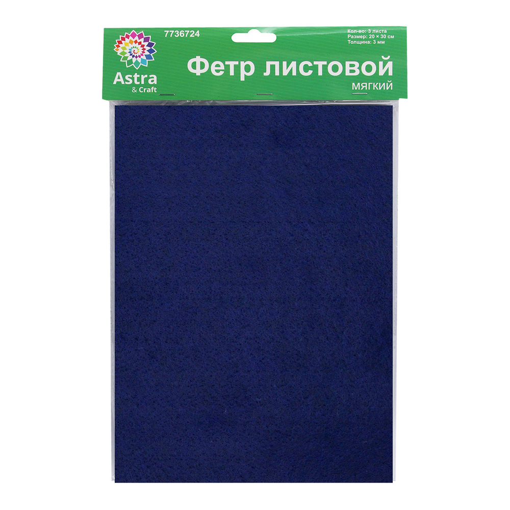 Фетр листовой мягкий "Astra" (20х30 см; голубой; 3 листа)