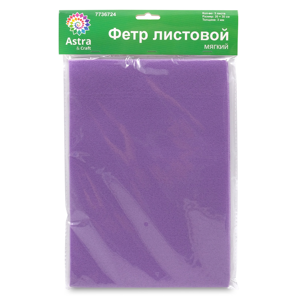 Фетр листовой мягкий "Astra" (20х30 см; фиолетовый; 3 листа)