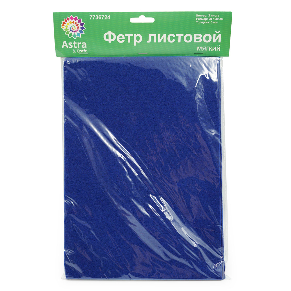 Фетр листовой мягкий "Astra" (20х30 см; сапфирово-синий; 3 листа)