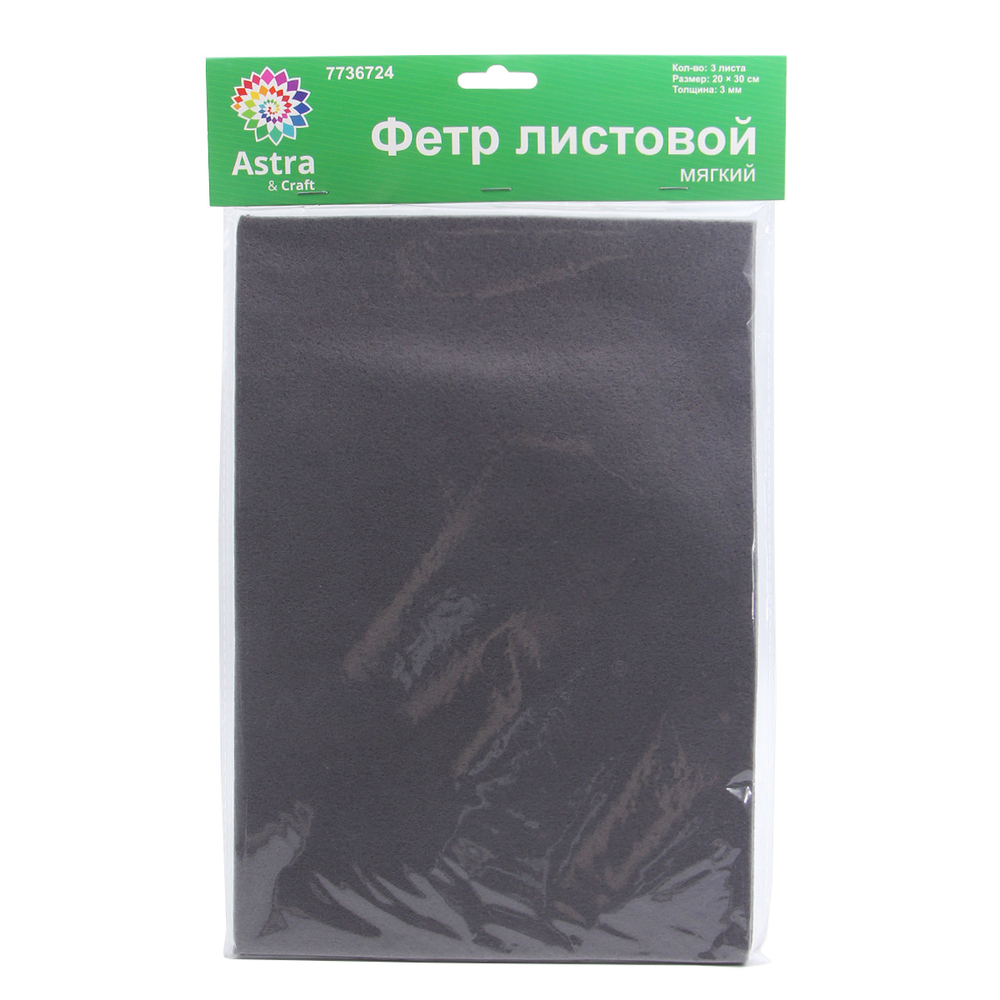 Мягкий листовой фетр от "Astra&Craft" – практичный материал для творчества. Фетр не осыпается, его легко сшивать или фиксировать на текстильный клей. Благодаря 'волокнистой' фактуре и небольшому ворсу фетр напоминает шерсть, но при этом гигиеничен, не является питательной средой для микроорганизмов и насекомых.