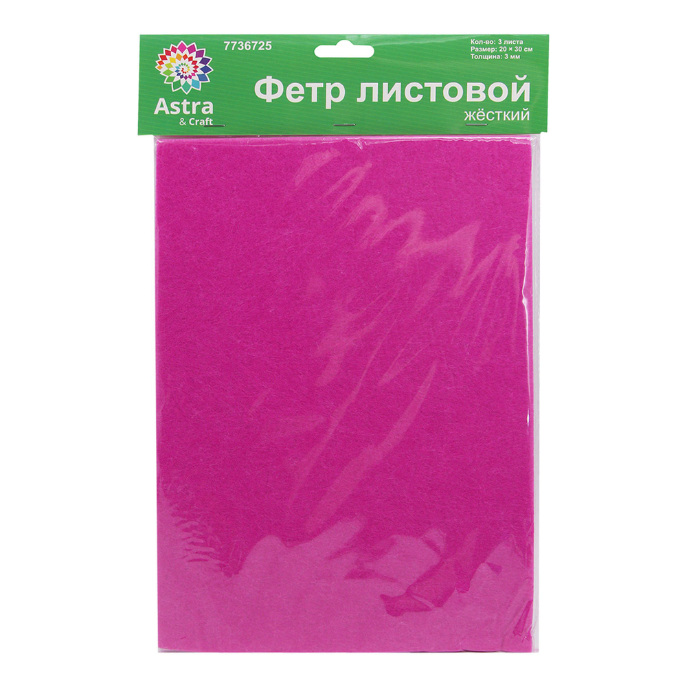 Фетр листовой жесткий "Astra&Craft" (20х30 см; ярко-розовый; 3 листа)