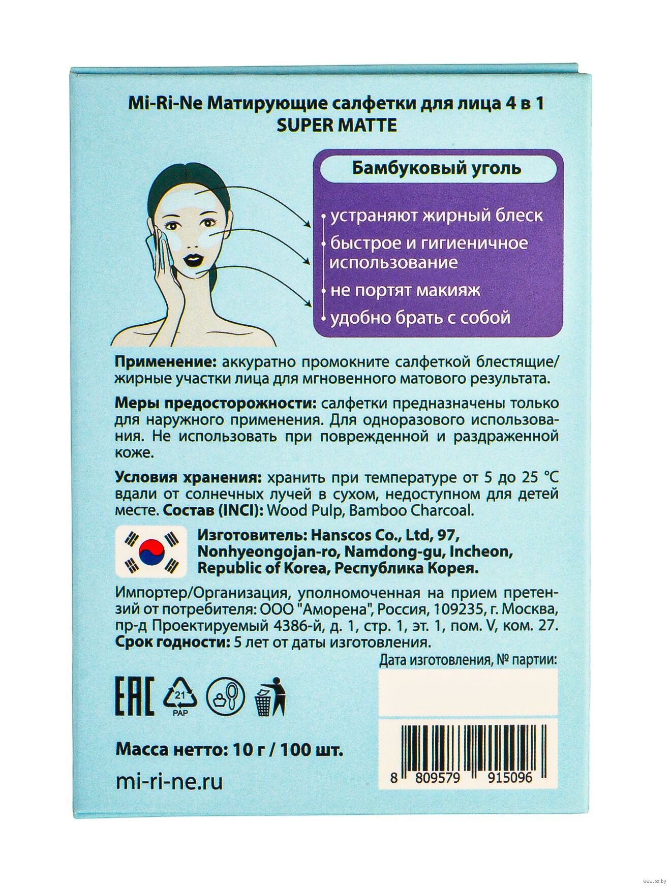 Матирующие салфетки для лица 4-в-1 с бамбуковым углем моментально устраняют жирный блеск, убирают излишки себума и делают кожу матовой, создавая на ее поверхности "эффект пудры".