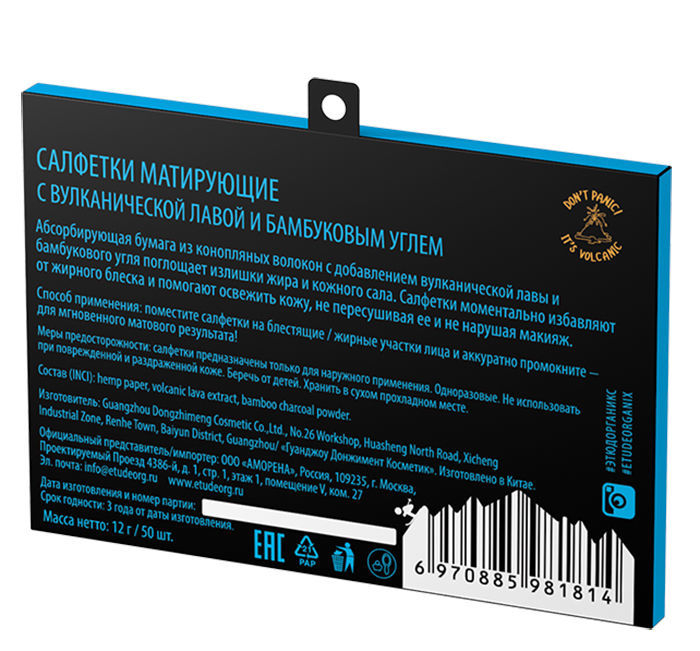 Матирующие бумажные салфетки "С вулканической лавой и бамбуковым углём" (50 шт.)