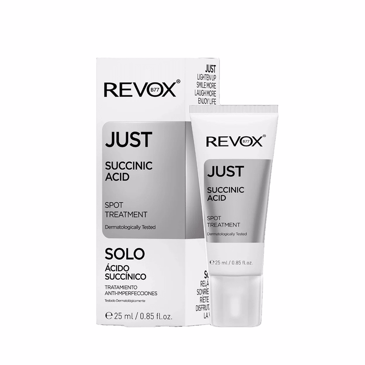 REVOX B77 JUST SUCCINIC ACID SPOT TREATMENT – это раствор для местного лечения высыпаний и пигментных пятен. Прыщи могут появляться из-за избыточной выработки кожного сала и скопления омертвевших клеток кожи, которые закупоривают поры и волосяные фолликулы. 2%-ная янтарная кислота помогает уменьшить воспаление, очистить поры и предотвратить их повторное загрязнение.