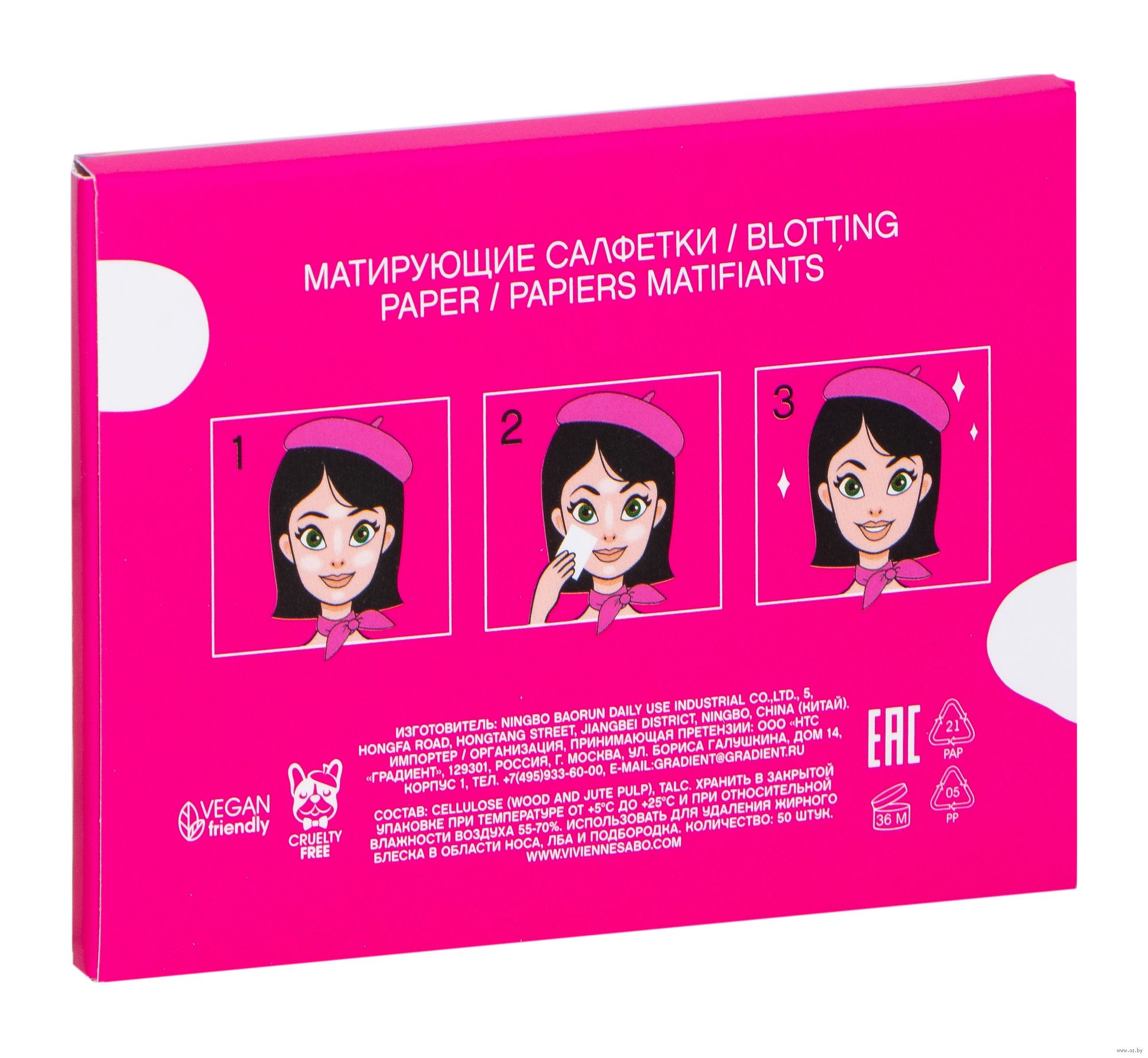 Прикладывать салфетку промокательными движениями к участкам лица, где имеется жирный блеск (Т-зона).Состав