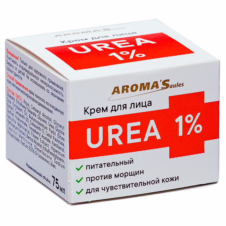 UREA 1% косметический крем против морщин с питательным и увлажняющим эффектом для чувствительной кожи. Совместное действие активных компонентов и витаминов оказывает благоприятное воздействие на кожу: увлажняет глубокие слои, питает, снимает раздражение, восстанавливает структуру, повышает упругость и эластичность.
