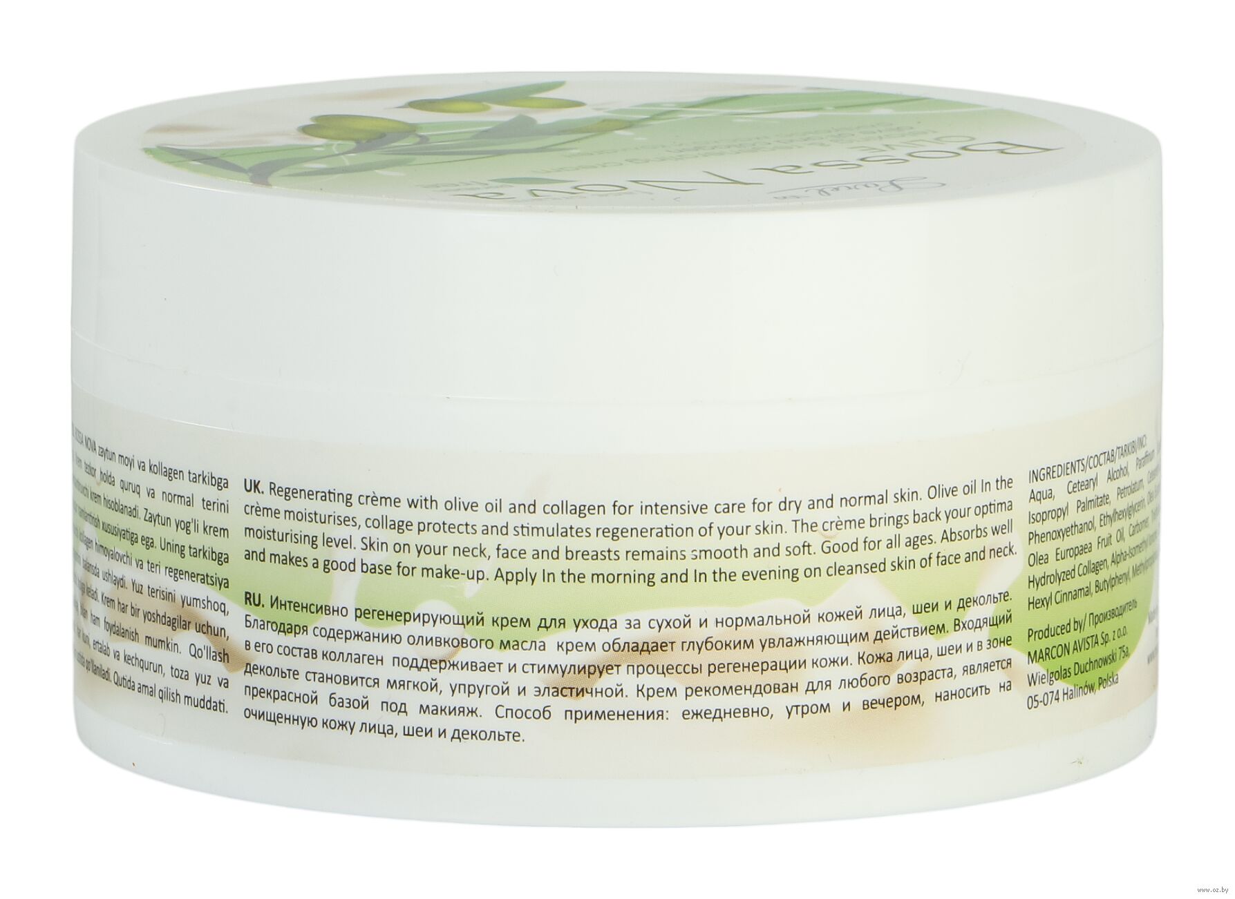 Интенсивно регенерирующий крем для ухода за сухой и нормальной кожей лица, шеи и декольте. Благодаря содержанию оливкового масла крем обладает глубоким увлажняющим действием. Входящий в его состав коллаген поддерживает и стимулирует процессы регенерации кожи. Кожа лица, шеи и в зоне декольте становится мягкой, упругой и эластичной. Крем рекомендован для любого возраста, является прекрасной базой для макияжа.