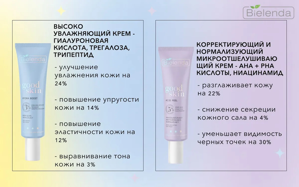 Увлажняющий крем для лица Bielenda "Good Skin Hydra Boost" оказывает сильное увлажняющее и питательное действие, а также способствует восстановлению оптимального уровня увлажненности кожи без лишней нагрузки на её структуру.