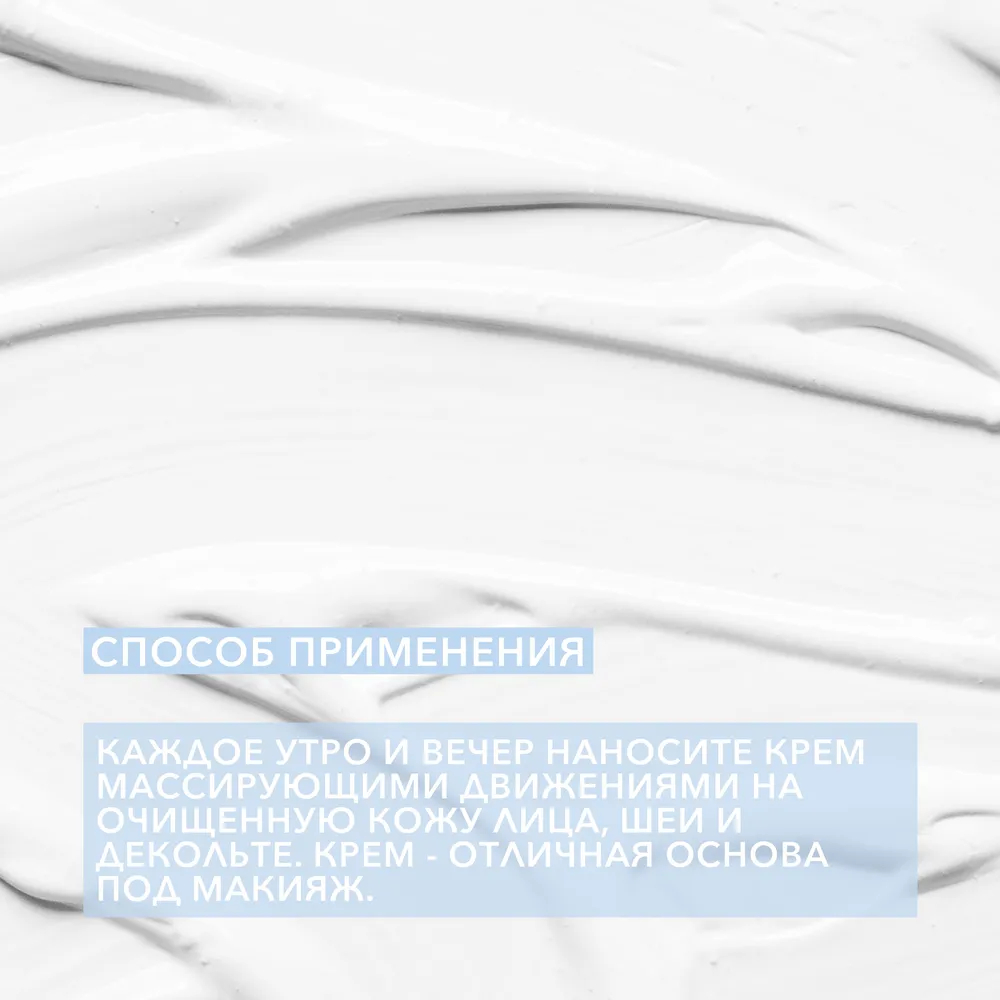 Каждое утро и вечер наносите крем массирующими движениями на очищенную кожу лица, шеи и декольте, дайте ему впитаться.Состав