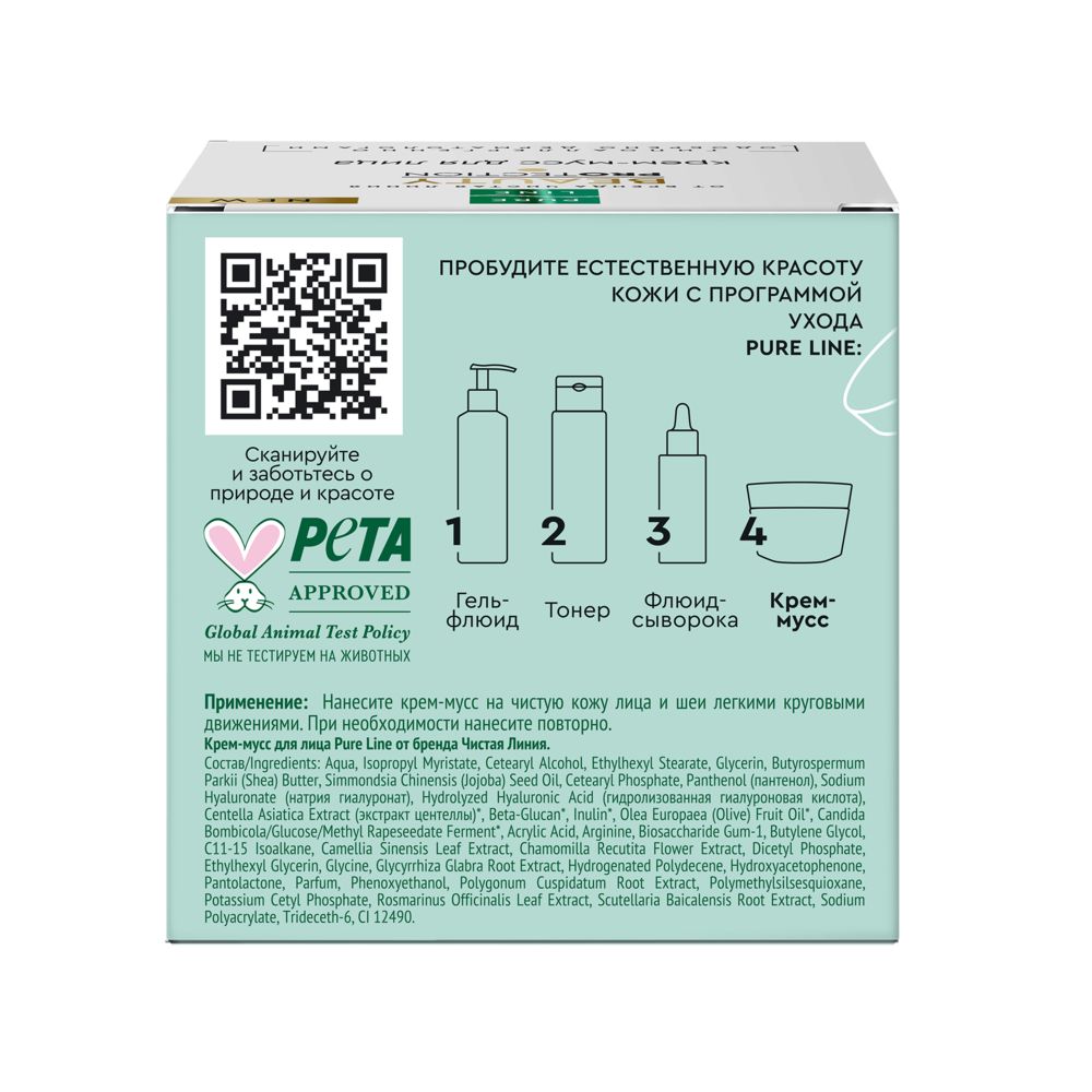 Крем-мусс для лица "Pure Line" с гиалуроновой кислотой и D-пантенолом.