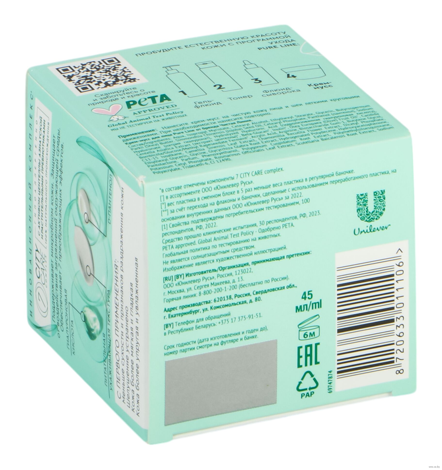 Нанесите крем-мусс на чистую кожу лица и шеи легкими круговыми движениями. При необходимости нанесите повторно.Состав