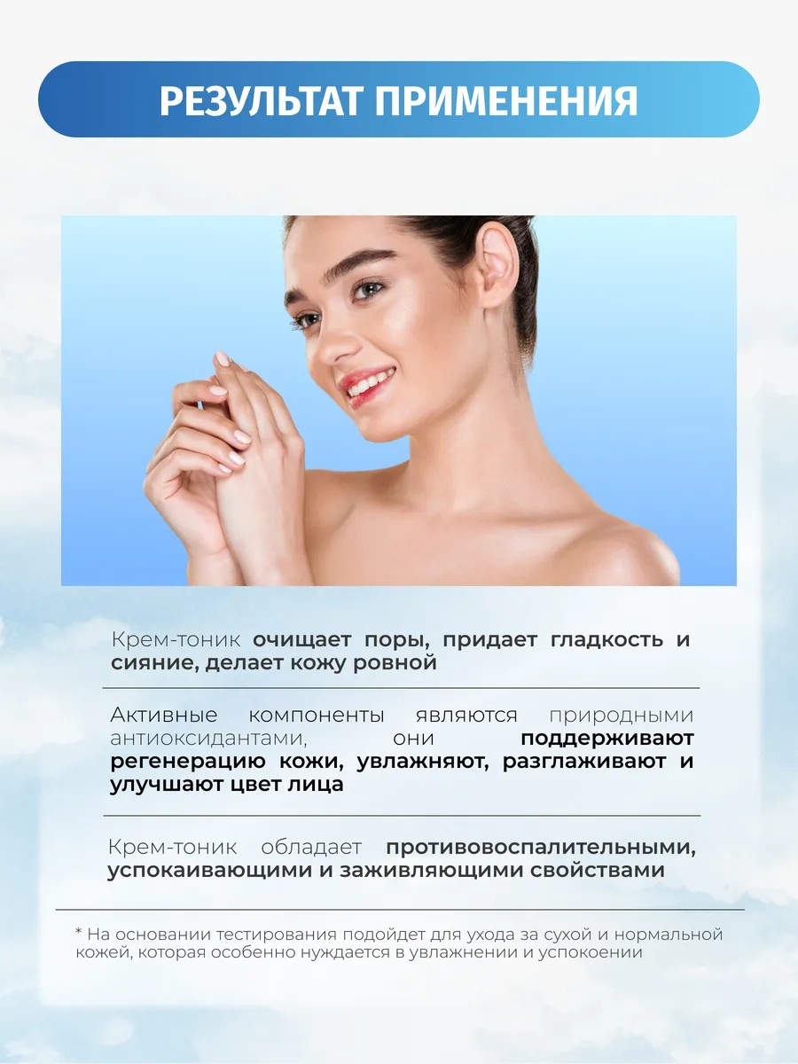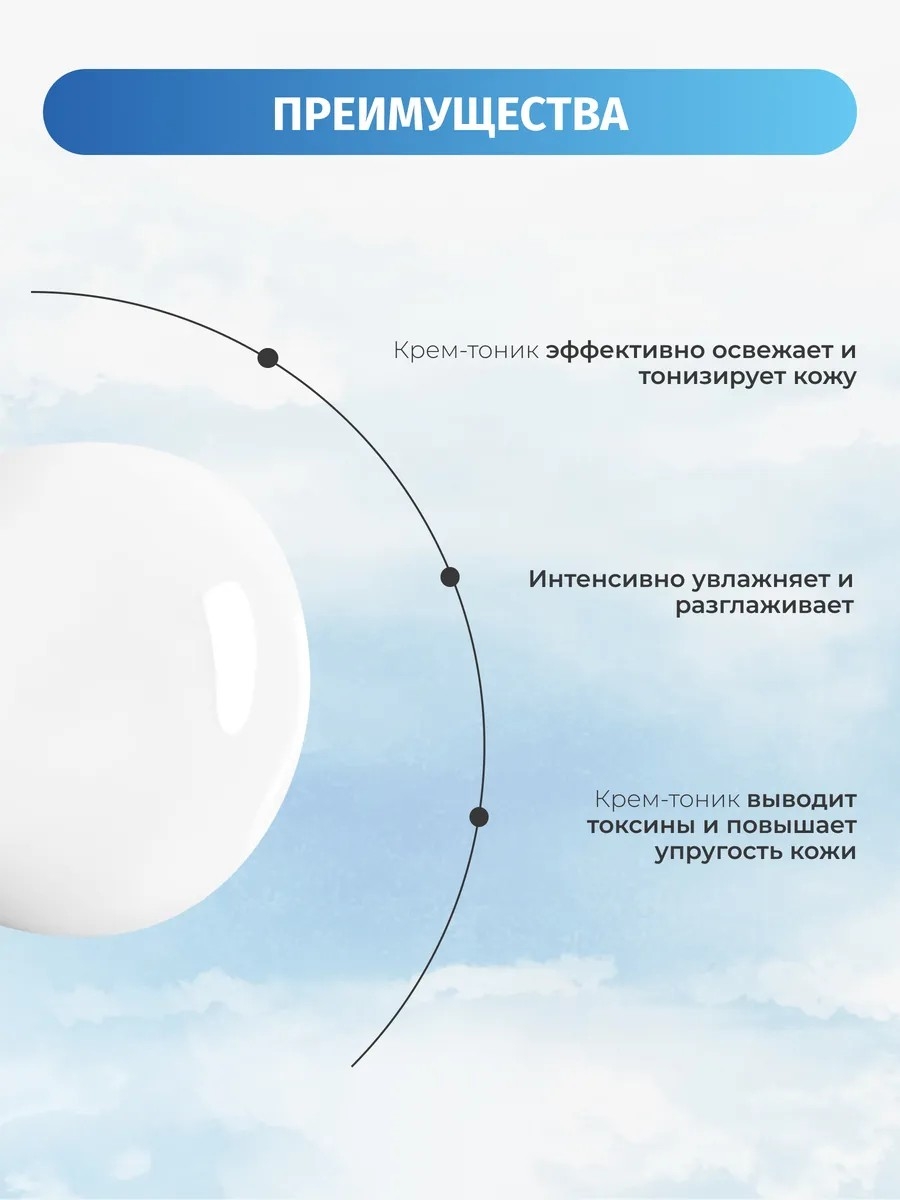 Увлажняющий и тонизирующий крем-тоник с легкой веганской формулой увлажняет и тонизирует, а благодаря лёгкой текстуре моментально впитывается и освежает кожу.