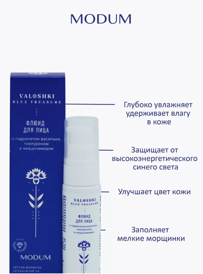 Флюид для лица "С гидролатом василька, гиалуроном и ниацинамидом" (30 г)