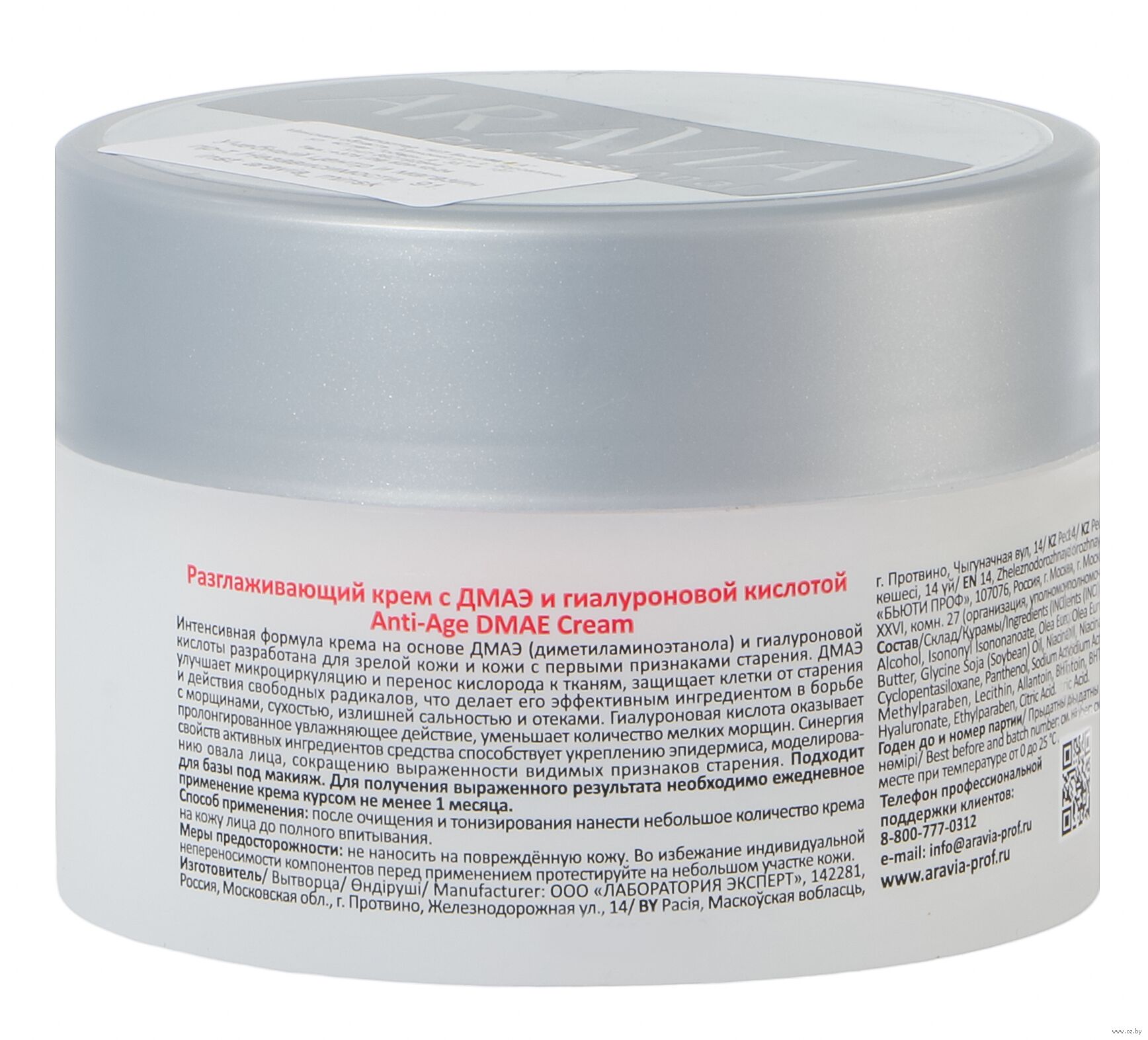 Интенсивная формула крема на основе ДМАЭ (диметиламиноэтанола) и гиалуроновой кислоты разработана для зрелой кожи и кожи с первыми признаками старения. ДМАЭ улучшает микроциркуляцию и перенос кислорода к тканям, защищает клетки от старения и действия свободных радикалов, что делает его эффективным ингредиентом в борьбе с морщинами изнутри, для решения проблем сухости, сальности и отеков. ДМАЭ в комплексе с гиалуроновой кислотой приобретает пролонгированное действие, депонирование и повышенную эффективность проникновения. Синергия свойств активных ингредиентов средства способствует укреплению эпидермиса, моделированию овала лица, сокращению выраженности морщин. Подходит для базы под макияж.