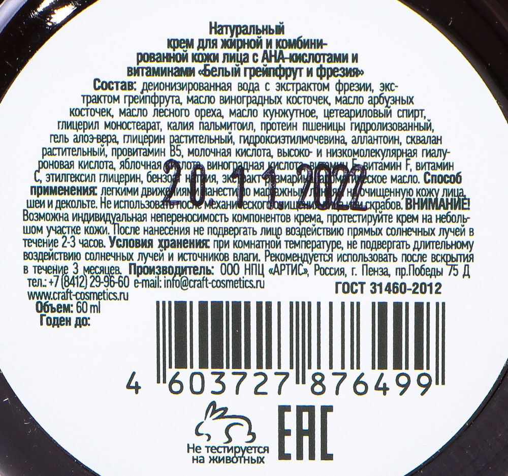 | Активные компоненты | Витамин е, витамин с, гиалуроновая кислота, глицерин, комплекс масел, молочная кислота, мочевина, фруктовые кислоты (aha-кислоты) |