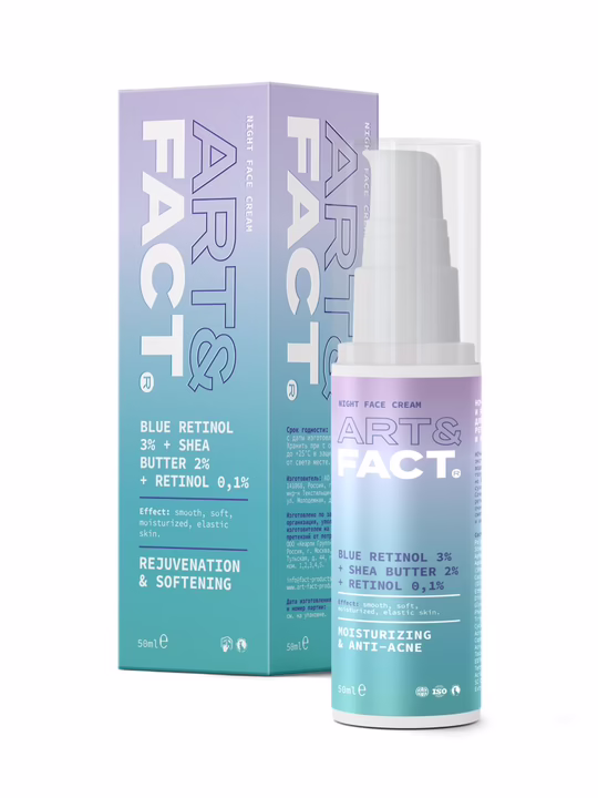 Ночной крем для лица "Омолаживающий и регенерирующий. Blue Retinol 3%+Shea Butt 2%" (50 мл)