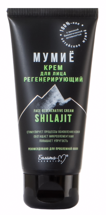 Крем на основе натурального алтайского мумиё стимулирует регенерацию кожи, увлажняет, питает и тонизирует, делает кожу упругой и эластичной, придает ей свежий и сияющий вид.