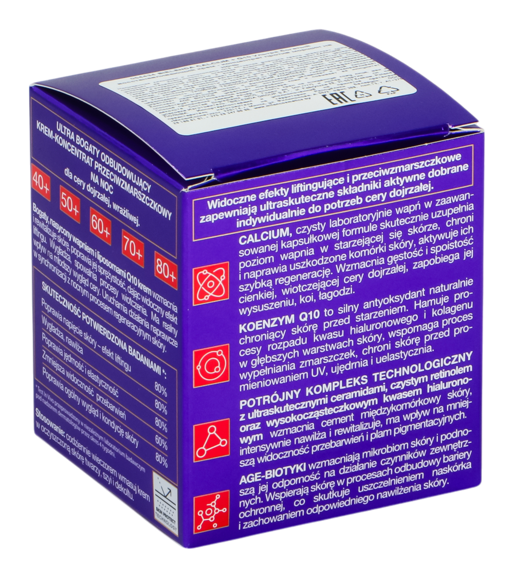 Богатый восстанавливающий крем-концентрат против морщин предназначен для ночного ухода за чувствительной и зрелой кожей. Насыщенный крем, насыщенный кальцием и липосомами Q10, укрепляет и оздоравливает кожу, повышает ее эластичность, придавая видимый эффект лифтинга. Разглаживает и замедляет процессы дряблости. Оказывает реальное влияние на более молодой вид кожи. Запускает восстановительные процессы синхронно с процессом ночной регенерации кожи.