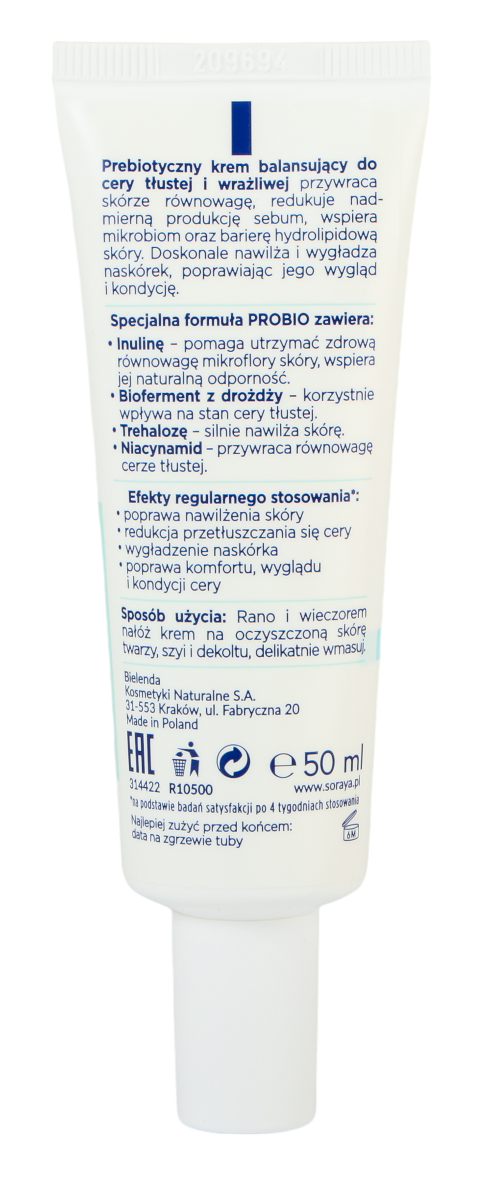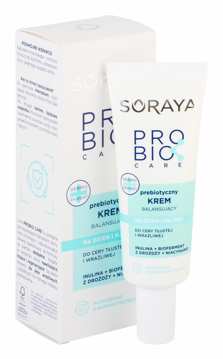 Пребиотический балансирующий крем для жирной и чувствительной кожи восстанавливает баланс кожи, уменьшает избыточное производство кожного сала, поддерживает микробиом и гидролипидный барьер кожи. Он отлично увлажняет и разглаживает кожу, улучшая ее внешний вид и состояние.