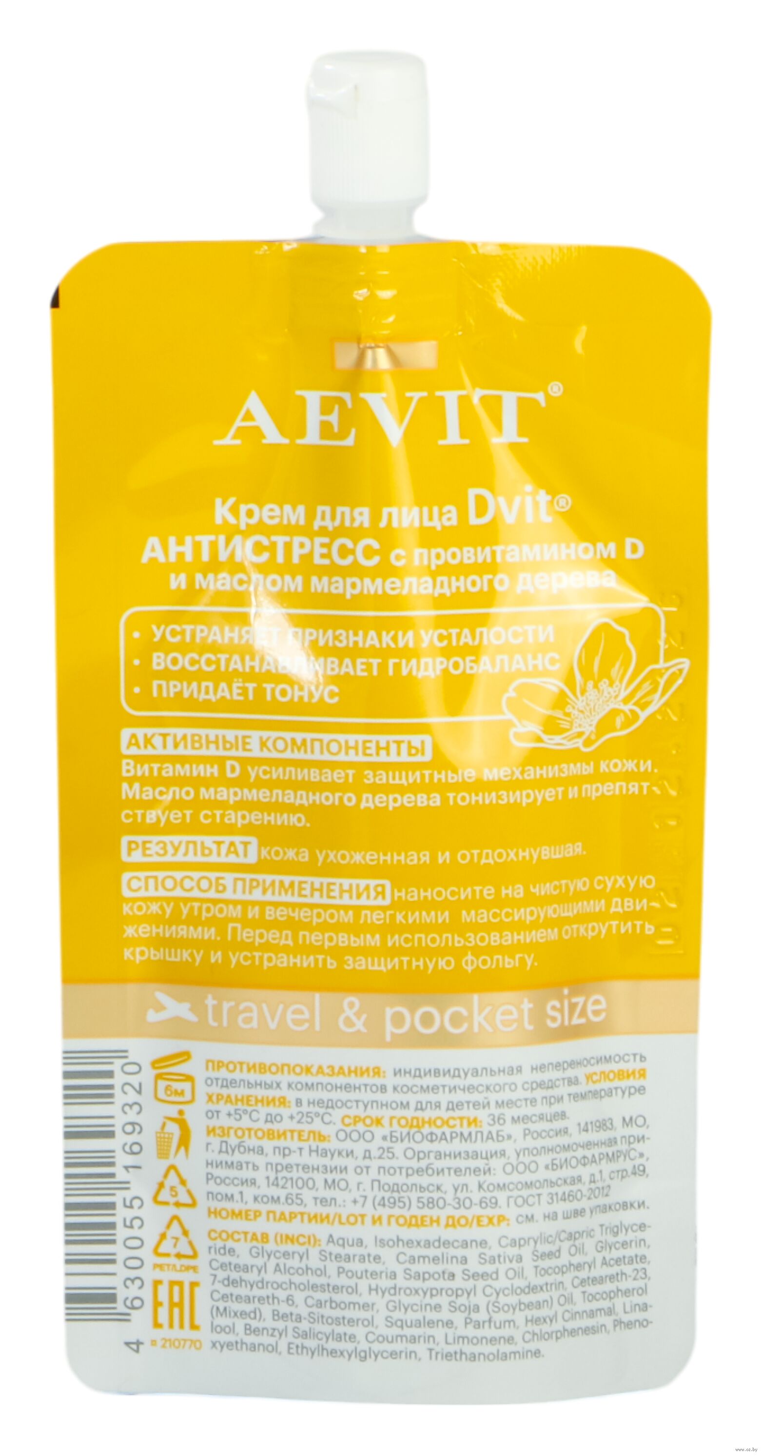 Крем анти-стресс для лица Dvit с витамином D и маслом мармеладного дерева.