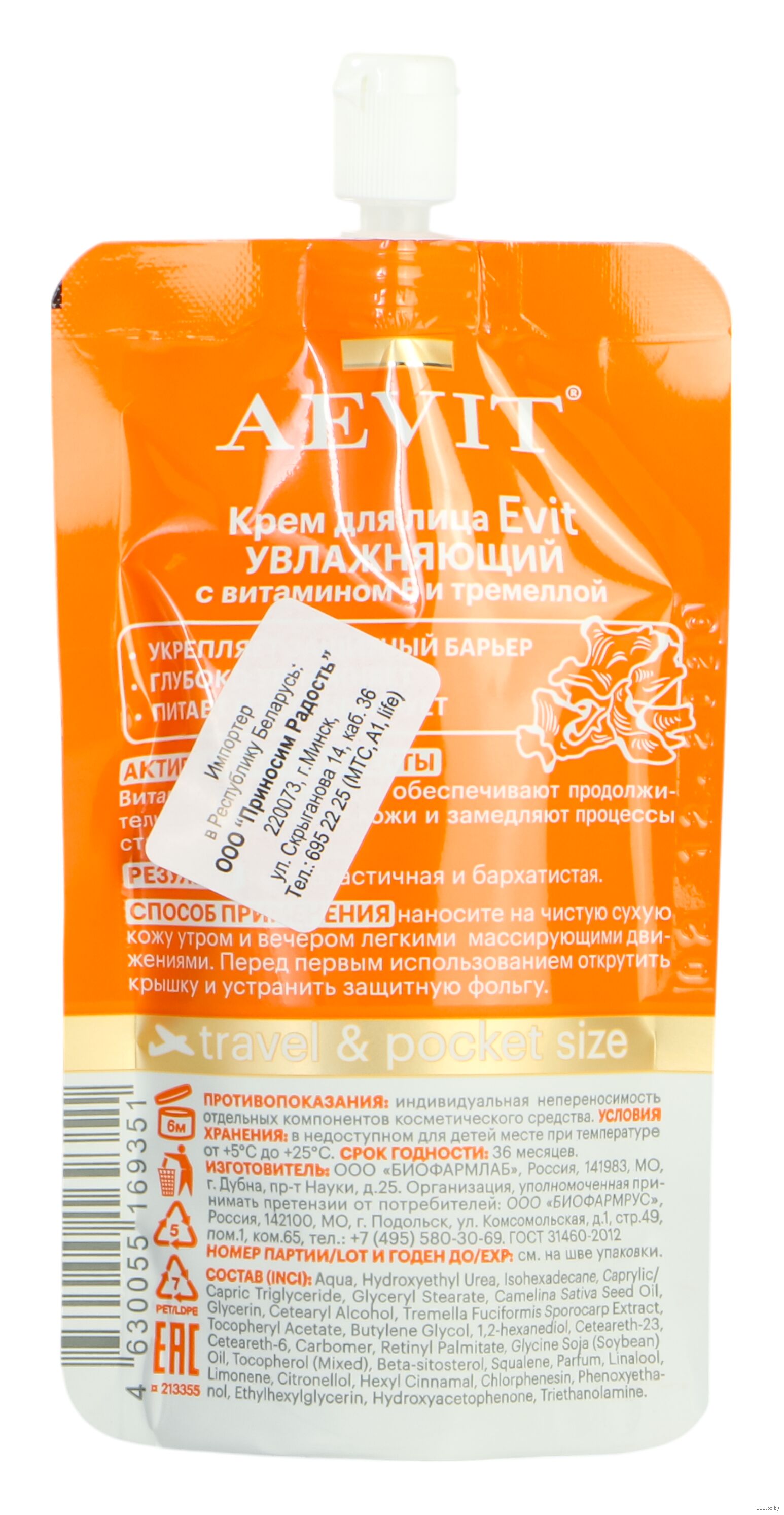 Крем увлажняющий для лица Еvit с витамином Е и ледяным грибом тремелла.