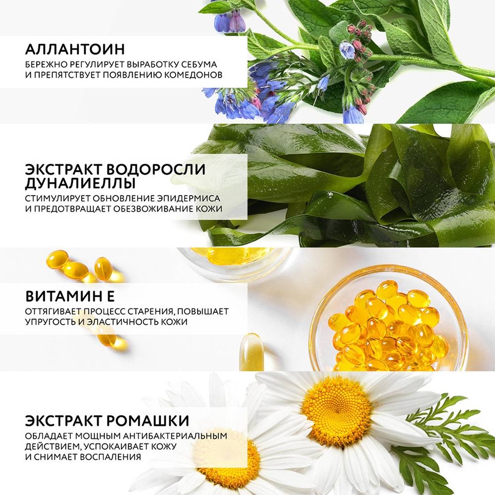 Водоросль Дуналиеллы богата антиоксидантами, которые защищают кожу от повреждений свободными радикалами, а минералы Мертвого моря помогают поддерживать водно-жировой баланс.