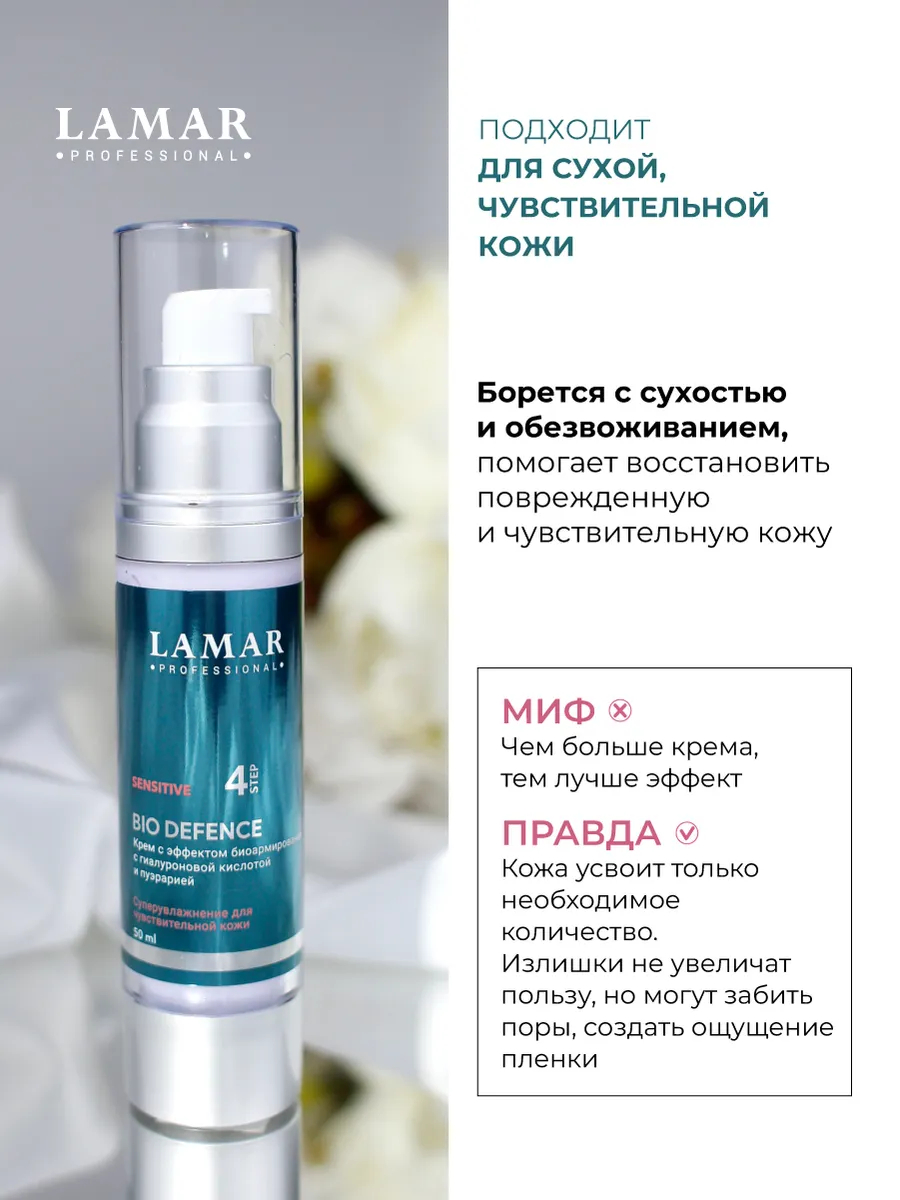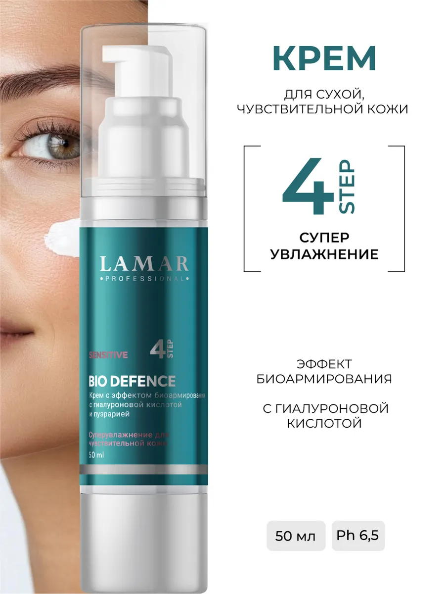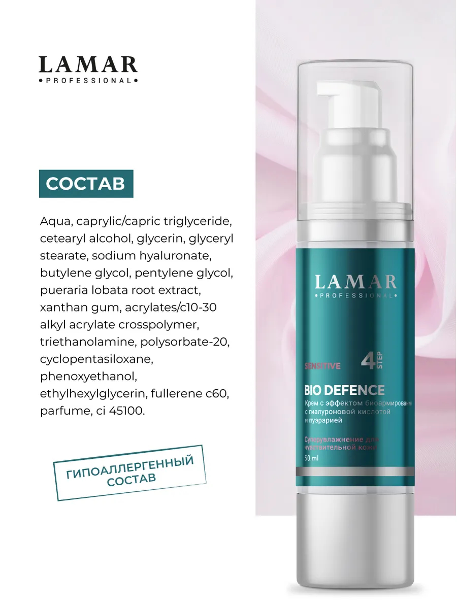 Крем с эффектом биоармирования с гиалуроновой кислотой и пуэрарией Bio Defence – это уникальное косметическое средство, предназначенное для ухода за кожей лица. Созданный на основе натуральных ингредиентов, крем обеспечивает интенсивное увлажнение, питание и укрепление кожи, придавая ей молодой и сияющий вид. Основные активные компоненты крема: