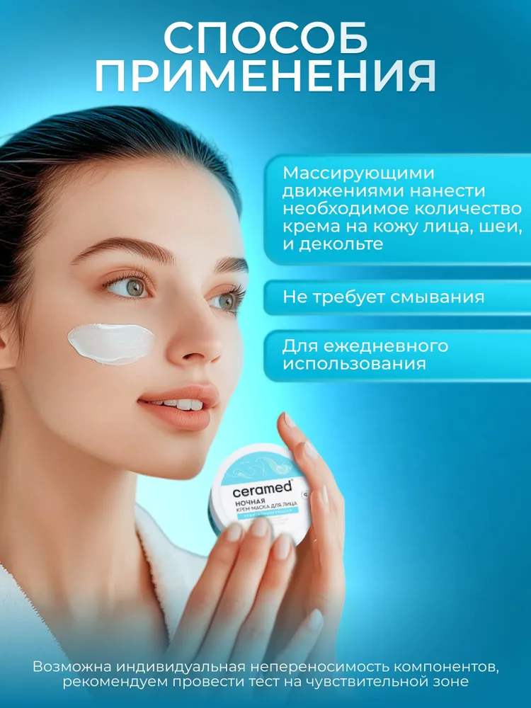Массирующими движениями нанести необходимое количество крема на кожу лица, шеи, и декольте. Не требует смывания.Состав